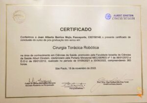 Cirujano Torácico | Certificado | Formación en INER, China y Brasil.